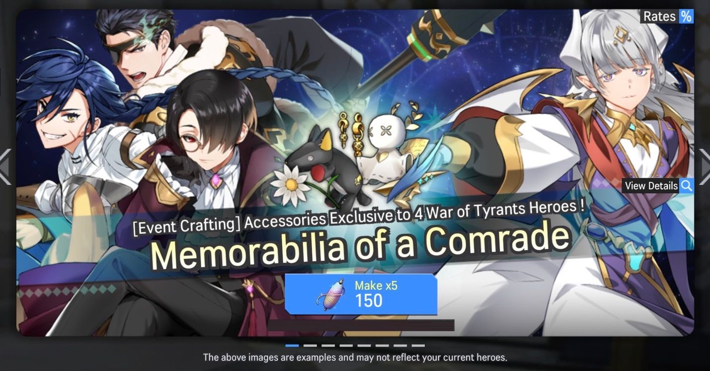 - You can only obtain accessories of 4 War of the Tyrants heroes in 'Memorabilia of a Comrade'.