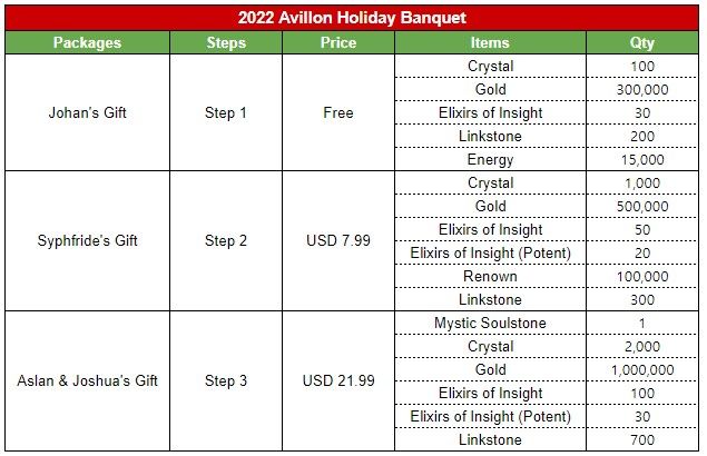 3. 3 Special Packages for 2022 Avillon Holiday Banquet