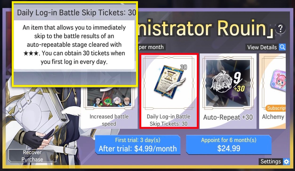 → After: Battle Skip Ticket x30 will be sent to the inbox every day upon the first log in