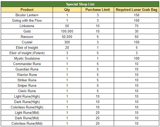 - When you defeat a mystic beast, you can receive 'Lunar Grab Bag' that can be used at the special shop.