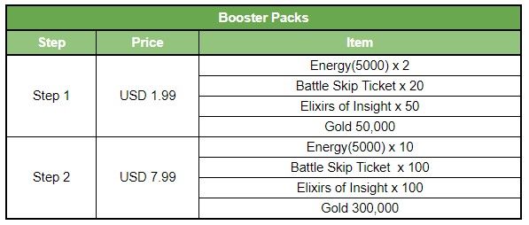 - Price: Booster Pack I (USD 1.99) / Booster Pack II (USD 7.99)
