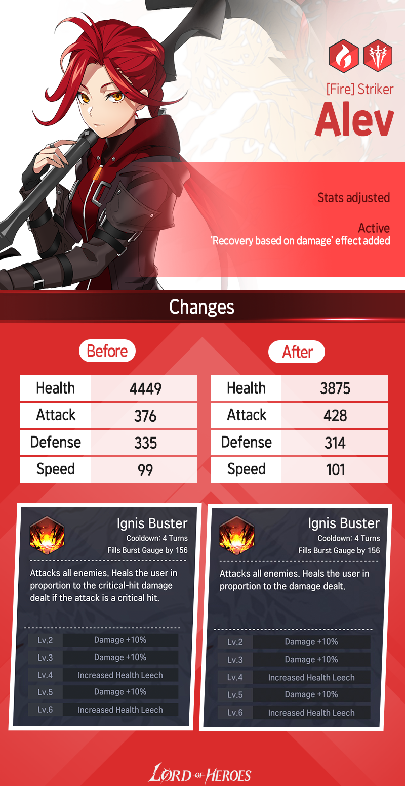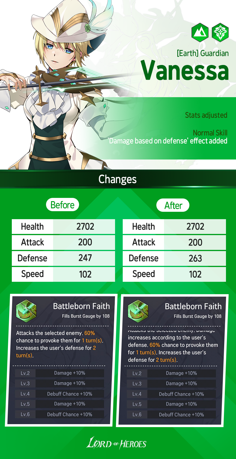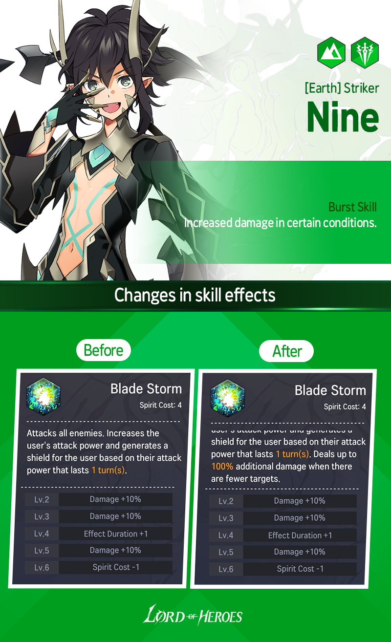 - Affected Heroes: Dhurahan (Dark) / Solphi (Light) / Solphi (Dark) / Alev (Fire) / Alev (Water) / Vanessa (Earth) / Nine (Earth) / Aslan (Dark) / Johan (Light) / Lairei (Earth) / Rosanna (Fire)
