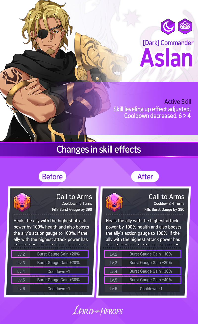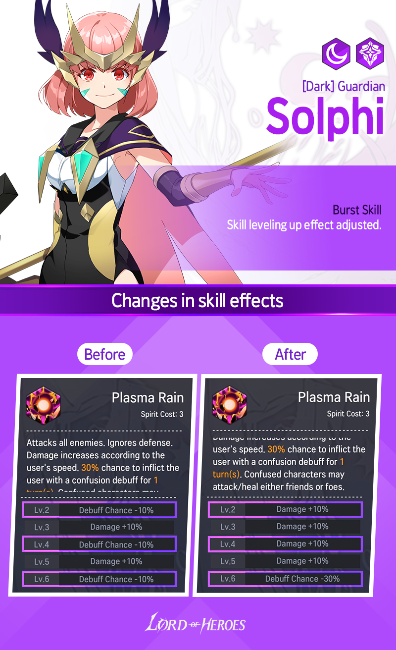 - Affected Heroes: Charlotte (Dark) / Dhurahan (Dark) / Baretta (Light) / Helga (Dark) / Mikhail (Dark) / Astrid (Earth) / Solphi (Light) / Alev (Fire) / Olivia (Light) / Krom (Fire) / Ricardo (Fire) / Aslan (Earth) / Solphi (Dark) / Lumie (Fire)