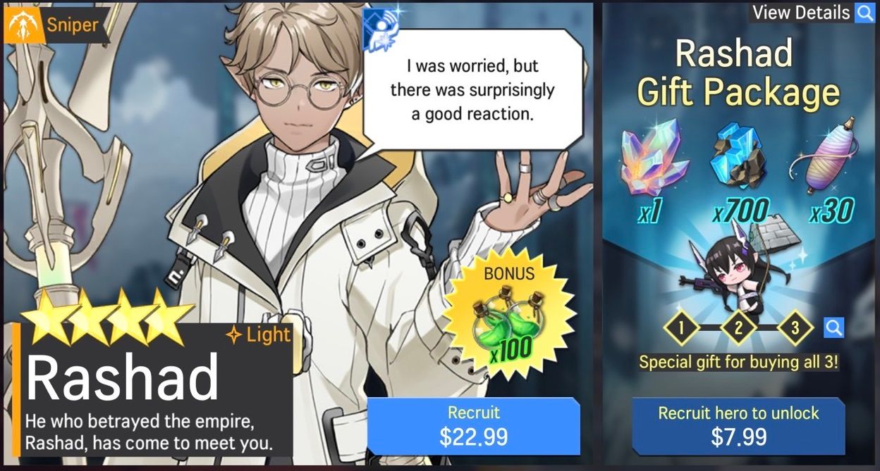 - Recruit Rashad (Light) by purchasing his Hero Recruitment Package in the Shop.