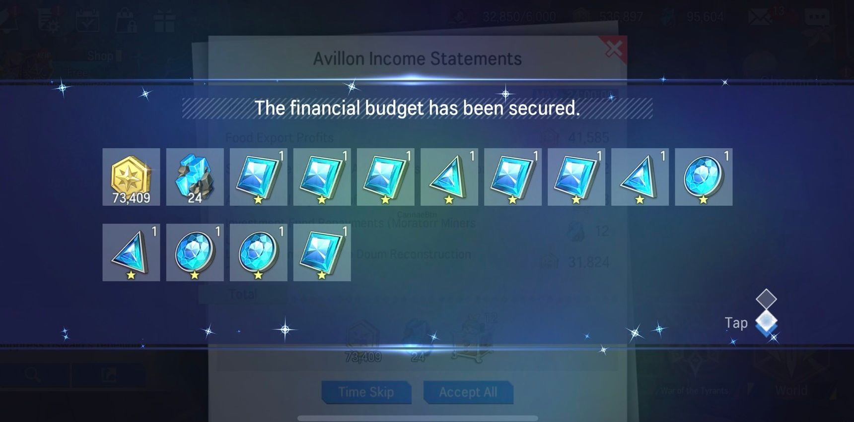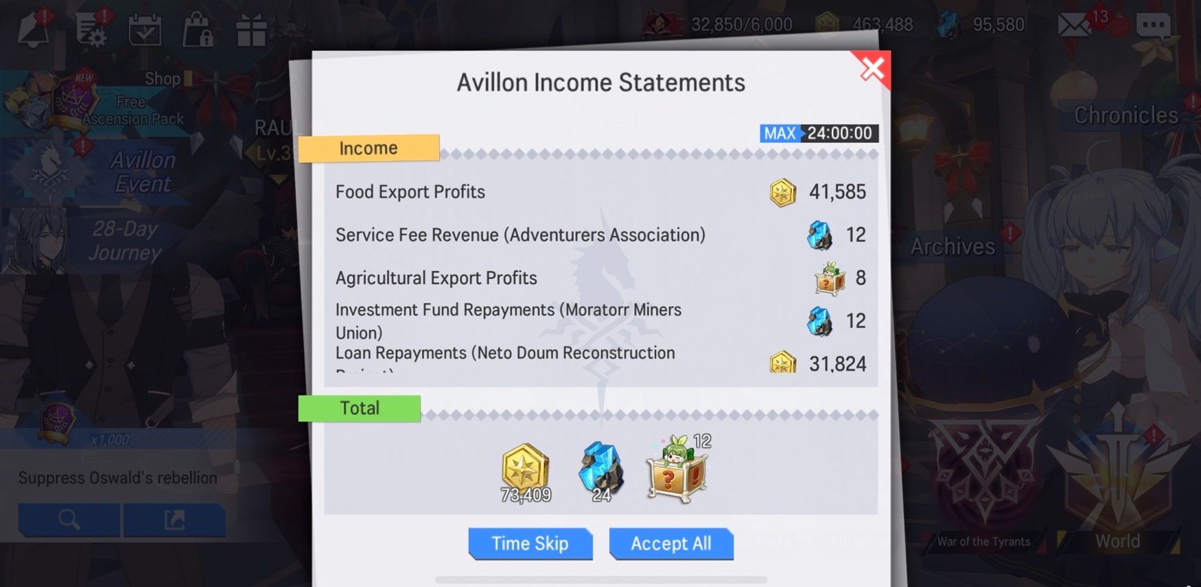 You can now stack up rewards and receive them in one go with the new 'Avillon Income Statement'. Keep a track of the sources of income of your nation and earn accumulated rewards!