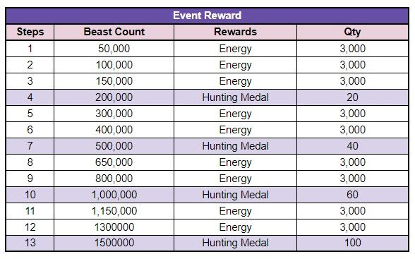 - The remaining hunting medals are automatically compensated to 500 Gold per medal when the event ends.