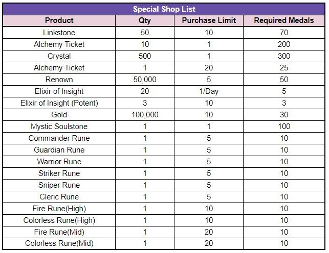 - Collected medals can be exchanged into various items at the special shop.