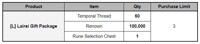 ■ Hero Package: Lairei (Light) Rerun