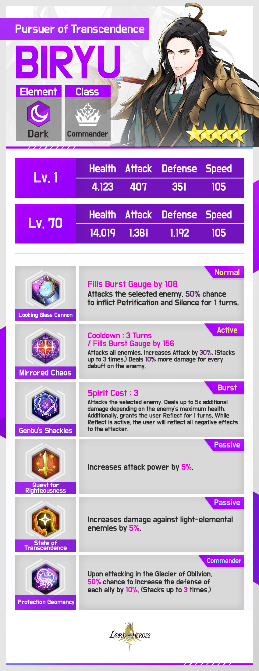 The imperial prince of Mir, the elect of Genbu, a seeker of transcendence—There are numerous titles that describe Biryu, but he does not care what others call him. He is constantly looking inwards, at his inner self and his own perfection.