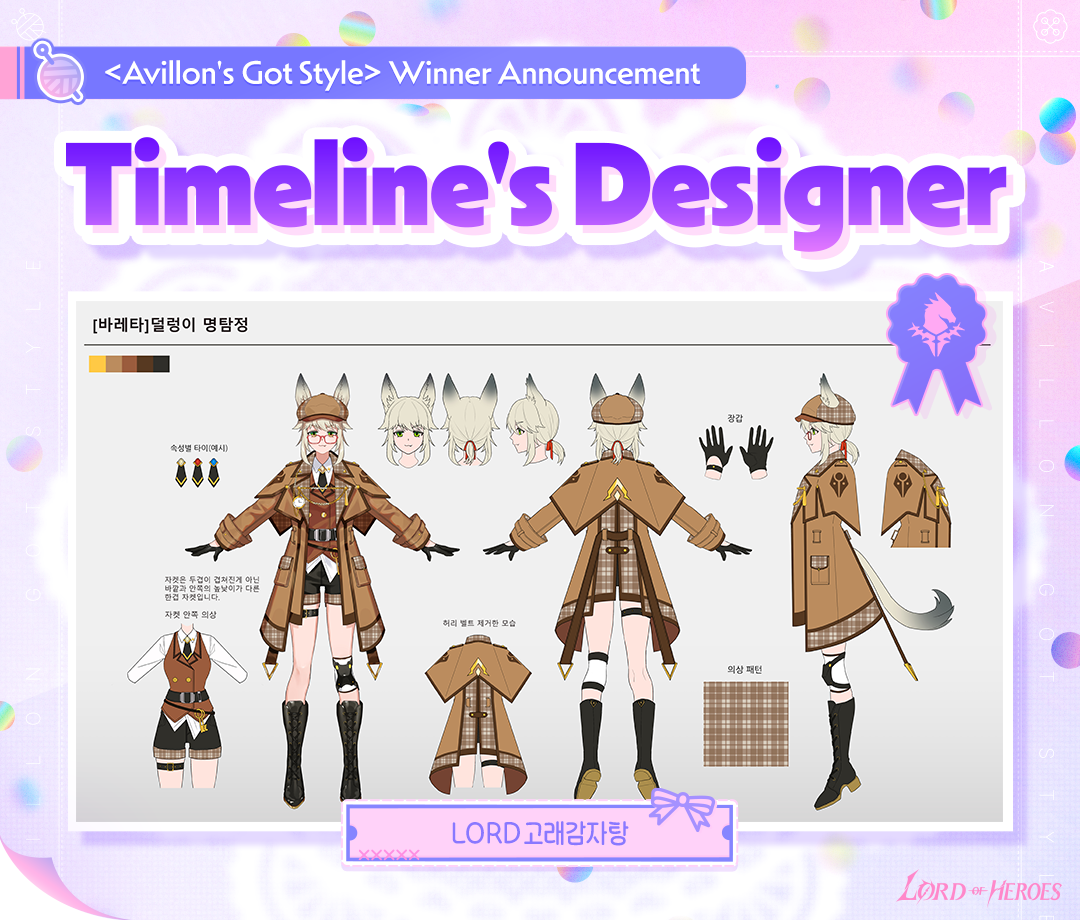 There was only supposed to be 1 winner of the Timeline's Designer prize, but our art team had a long discussion about which entries they thought should absolutely win. A vote was held to decide which of the top 2 submissions should be chosen, and it ended in a tie. Therefore, we decided to award them both. Congratulations! Both submissions are planned to be released as official outfits in the game, and more details on them will be released in a future notification.