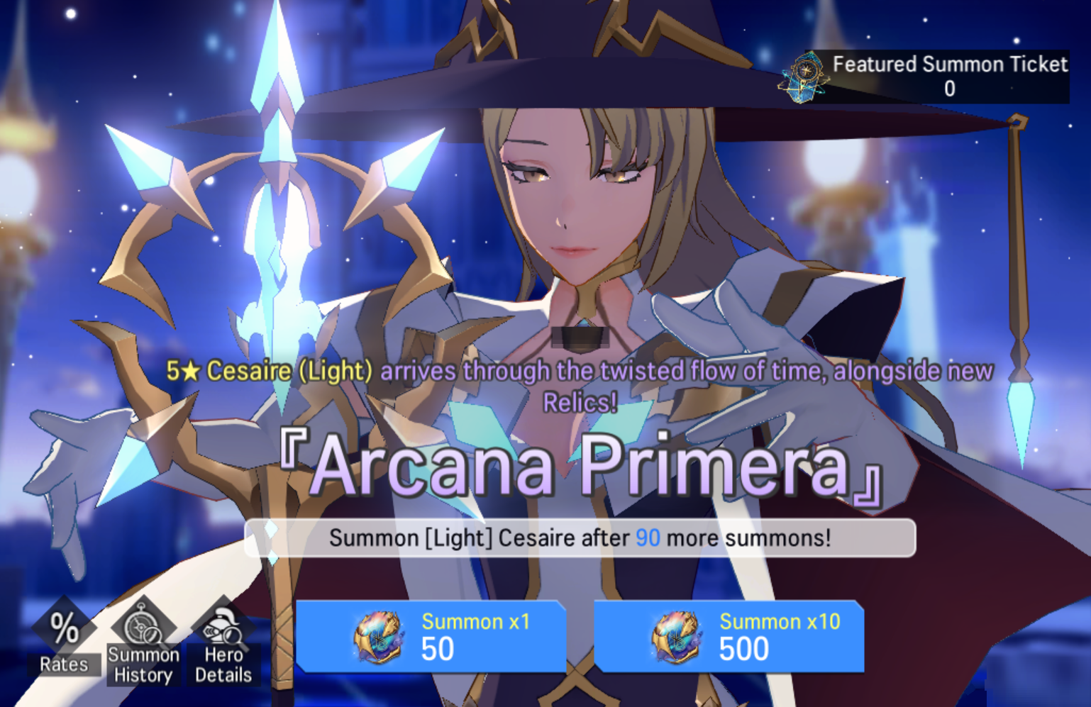※ If the player has not recruited 5★ Cesaire (Light) within 89 summons, the player is guaranteed to recruit 5★ Cesaire (Light) on their 90th summon.
