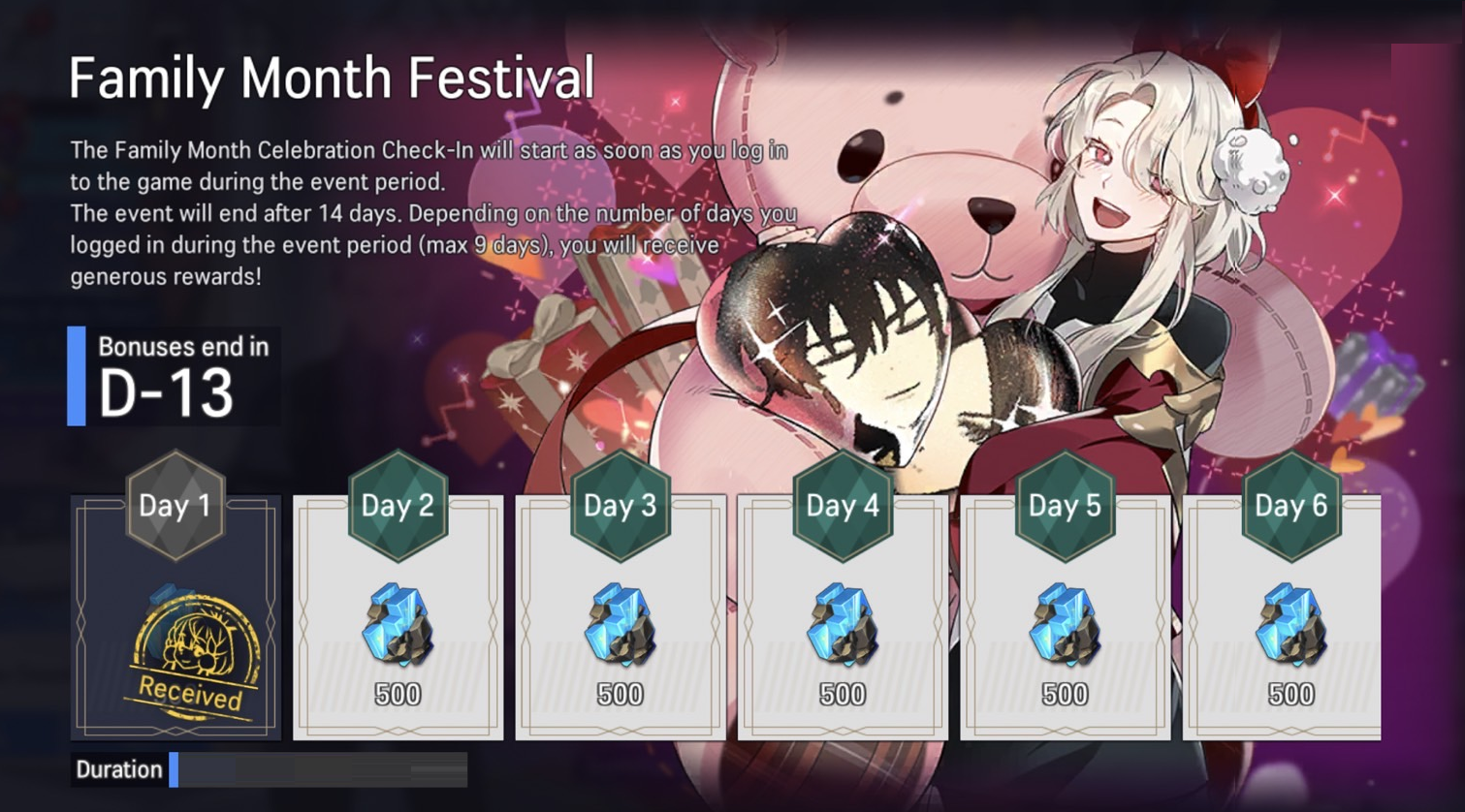 - Once activated, the Check-In Event will last for 14 days, starting from the first day you logged in.