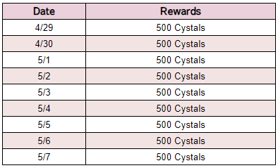 - Event Duration: April 29th (Sat) 03:00 – May 7th (Sun) 03:00 (UTC+0)