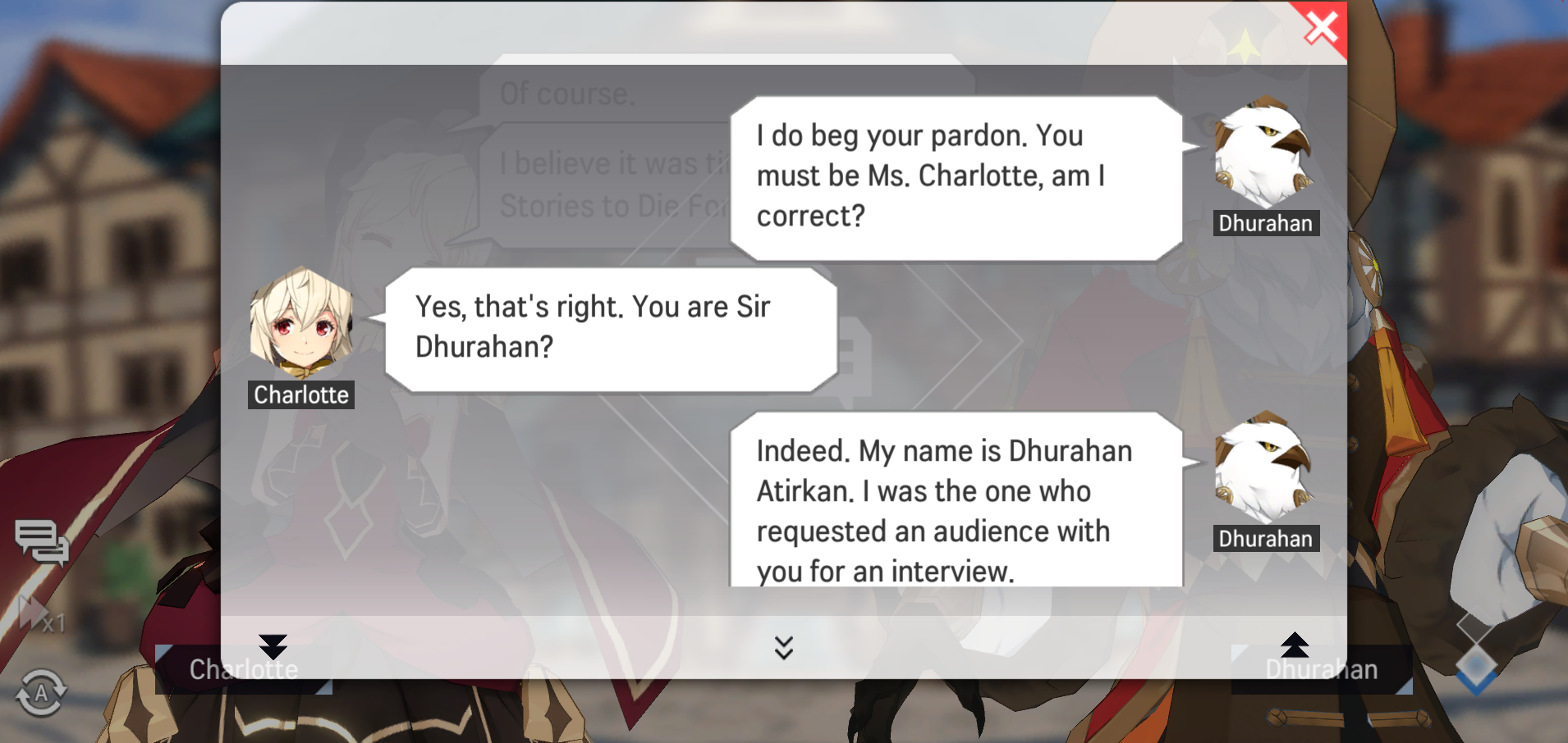 We know that tapping the screen to progress through the story can be tiring, so we're currently working on a new feature that allows Lords to sit back and enjoy the story as it unfolds automatically at a comfortable pace. We're also adding a 'Story History' feature that lets you go back and catch up on any dialogue you might have missed.