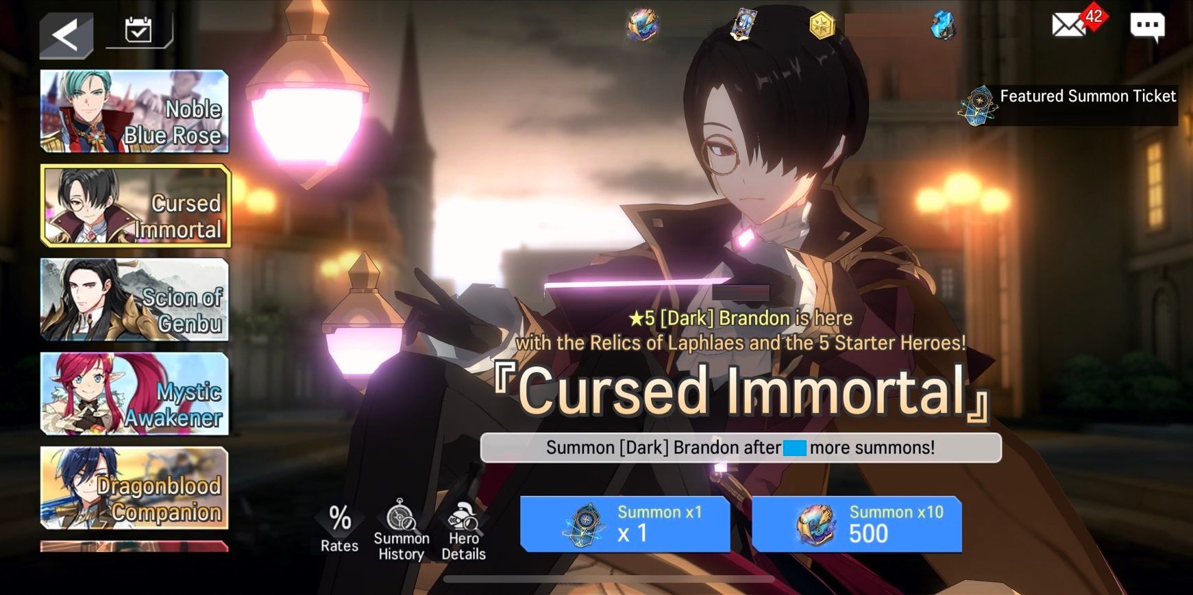 ※ If the player has not recruited 5★ Brandon (Dark) within 89 summons, the player is guaranteed to recruit 5★ Brandon (Dark) on their 90th summon.
