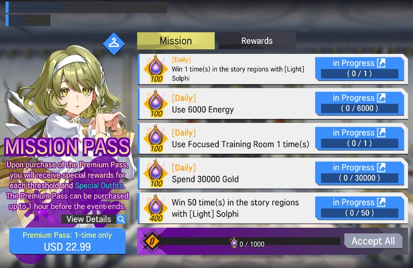 - Various rewards are obtainable by completing missions from the Mission Pass. Rewards include Energy, Gold, Mystic Soulstones, and much more.