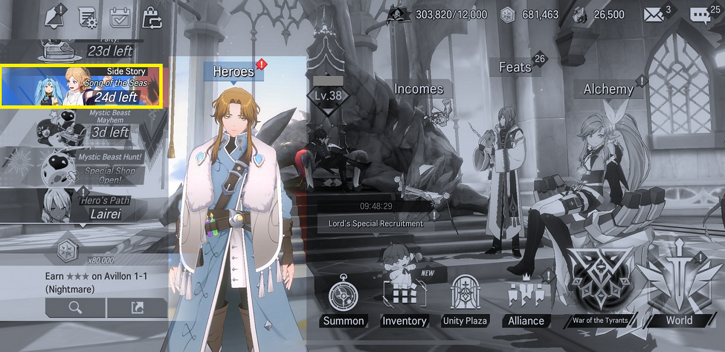 - You can access the new Side Story content by tapping the 'Side Story - Song of the Seas' button in the Citadel.