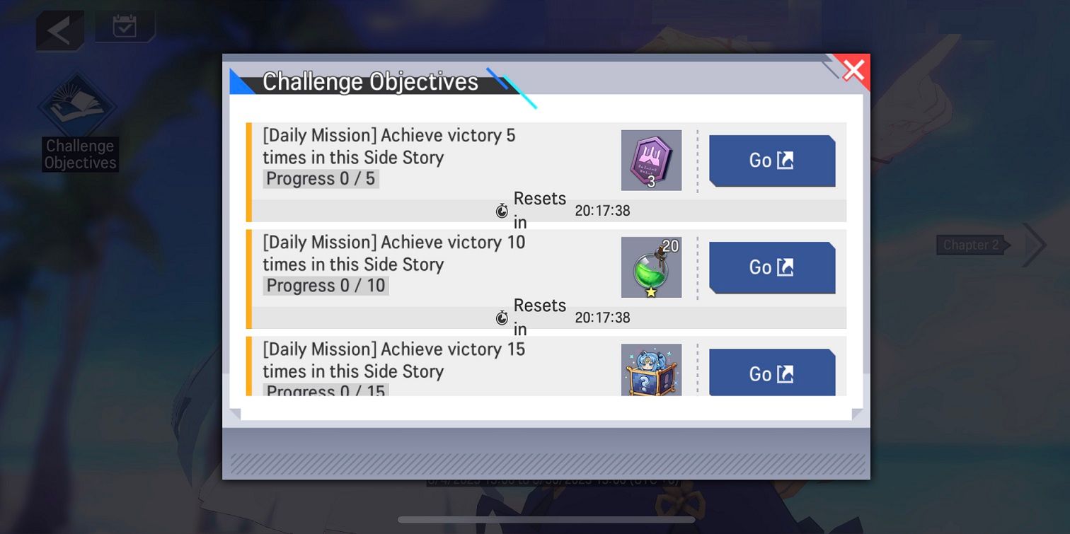 - You can check the Side Story missions through 'Challenge Objectives'.
