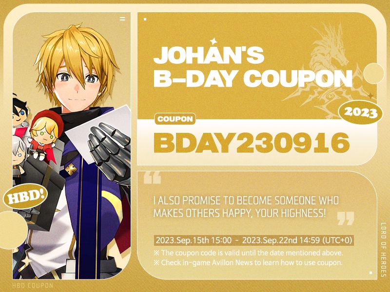 - Johan will gain 30% more hero EXP upon using Elixirs!
