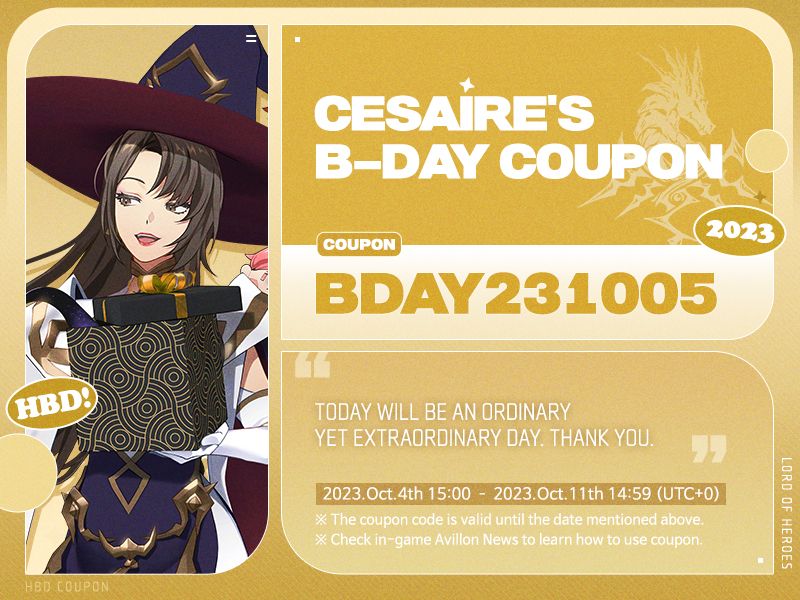 ◆ Coupon Code: BDAY231005