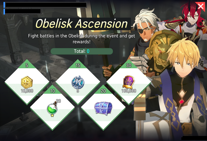 - Battle in the Obelisk and receive rewards according to the number of Sigils of Bravery used!
