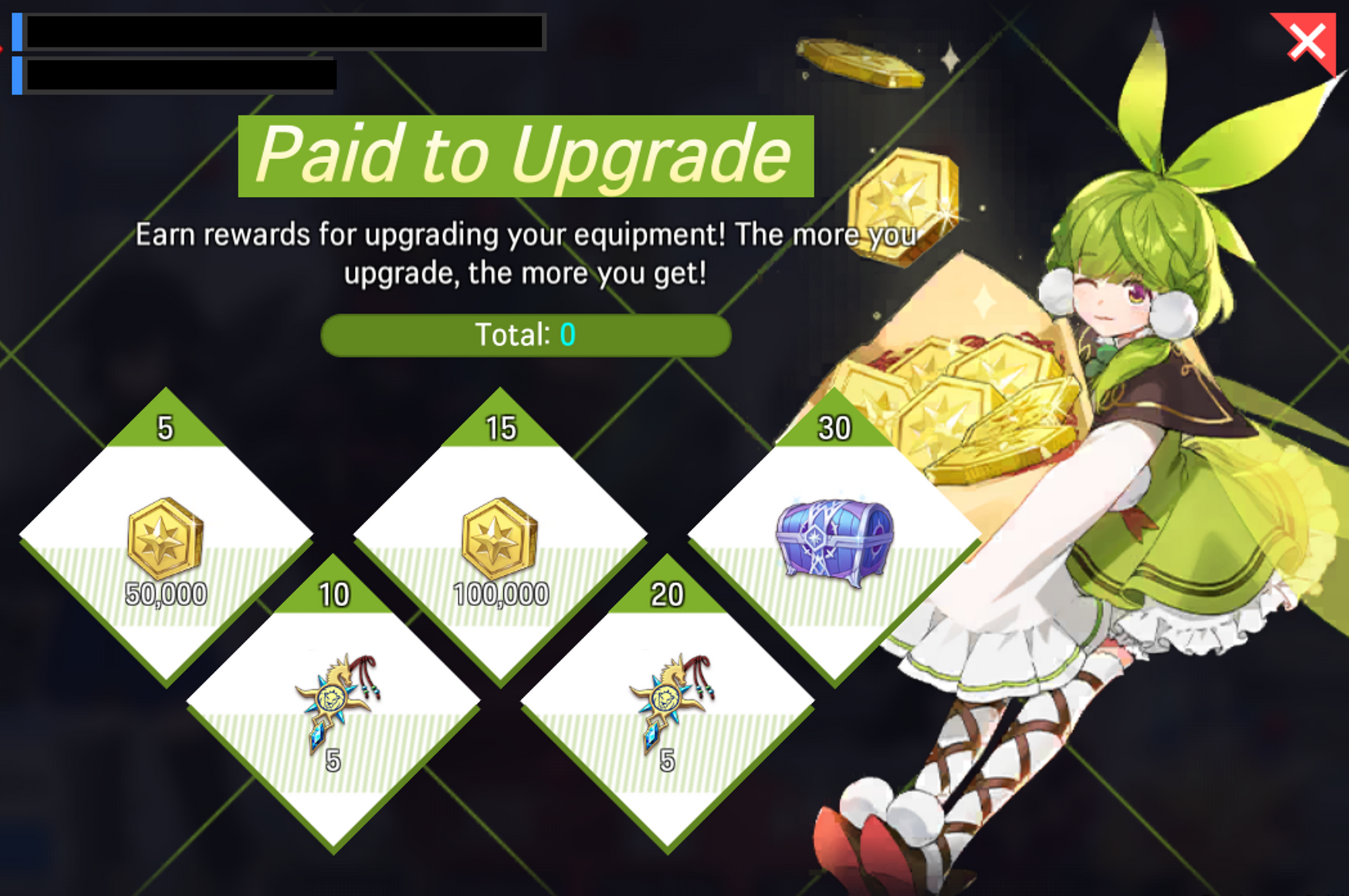 - Earn rewards for upgrading your equipment! The more you upgrade, the more you get!