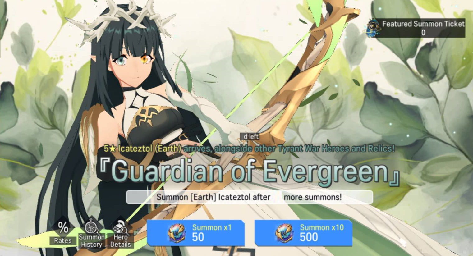 - Icateztol (Earth) can be recruited through Featured Summon - Guardian of Evergreen