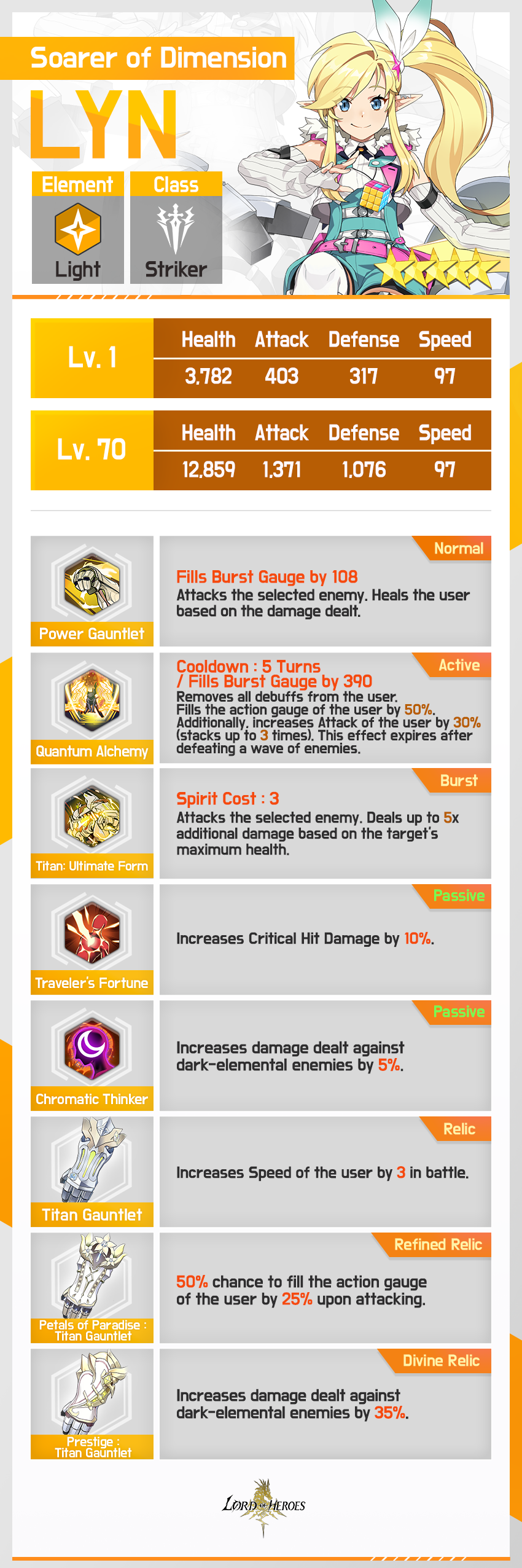To this day, the genius alchemist continues her journey across the world. Do not fret if you do not see Lyn for a while. As a dimensional traveler, you'll be able to find her at any time and in any space. She is a genius who loves the world with all her heart, and she will always find her way back to you.