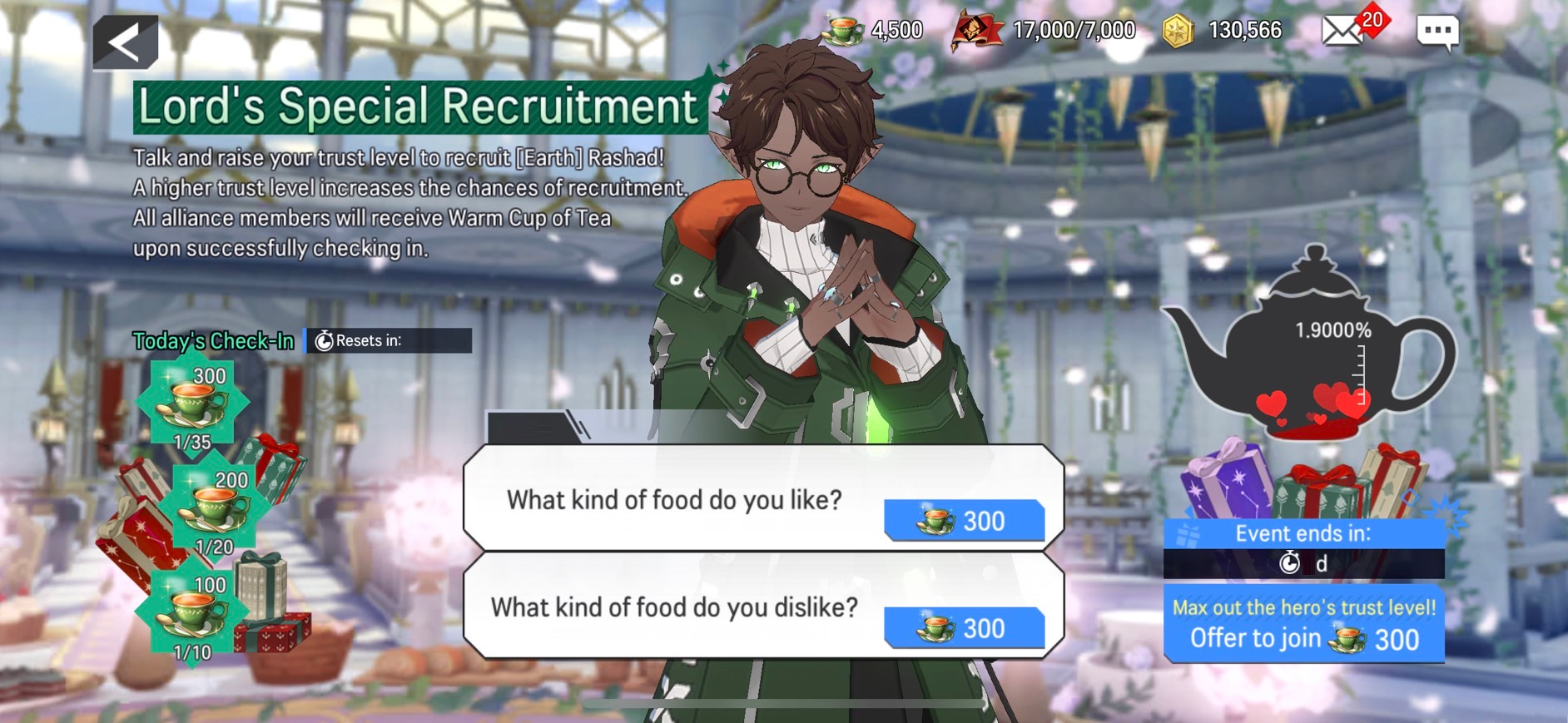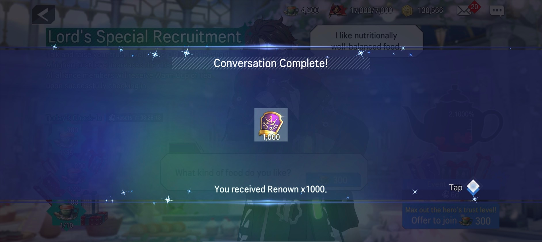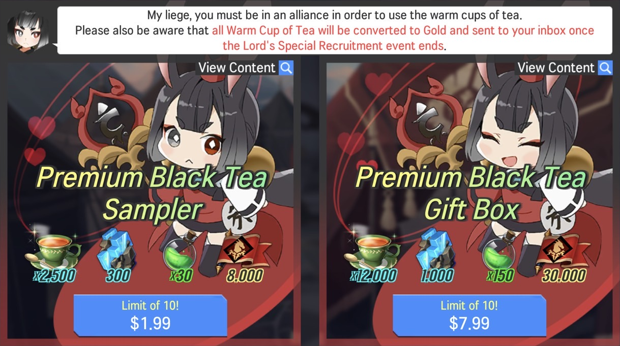 ※ All Warm Cup of Tea will be converted to Gold and sent to your Inbox after the Lord's Special Recruitment event ends.