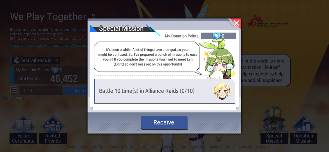 - Invite a friend who's either new to Avillon or has been away for a while. Earn Donation Points and complete Donation Missions to obtain special rewards!