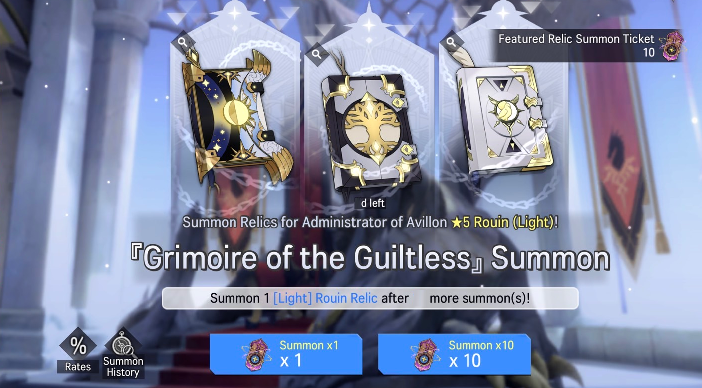 ※ If the player has not recruited 5★ Rouin (Light) within 89 summons, the player is guaranteed to recruit 5★ Rouin (Light) on their 90th summon.