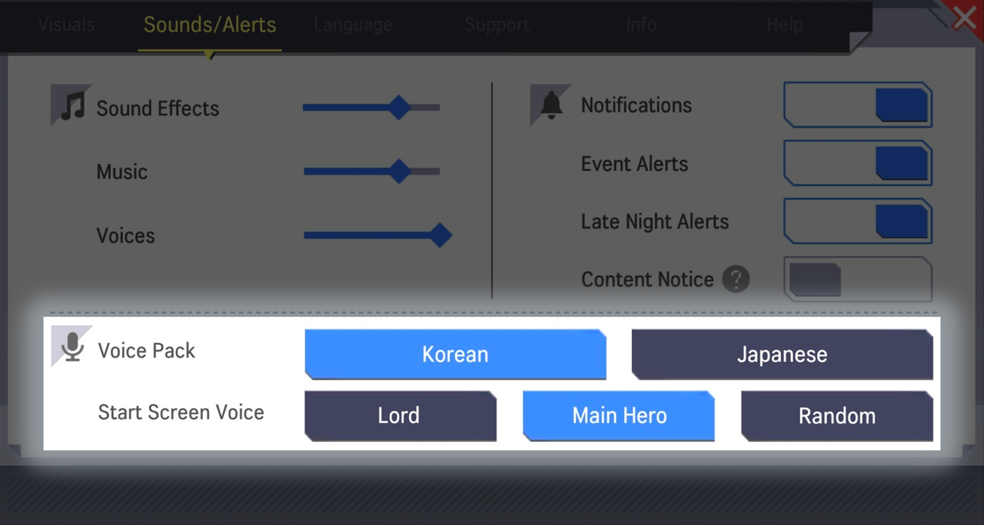 - Players will be able to choose the voice for the start screen from a variety of options. Options include the following: Lord, Main Hero, Random
