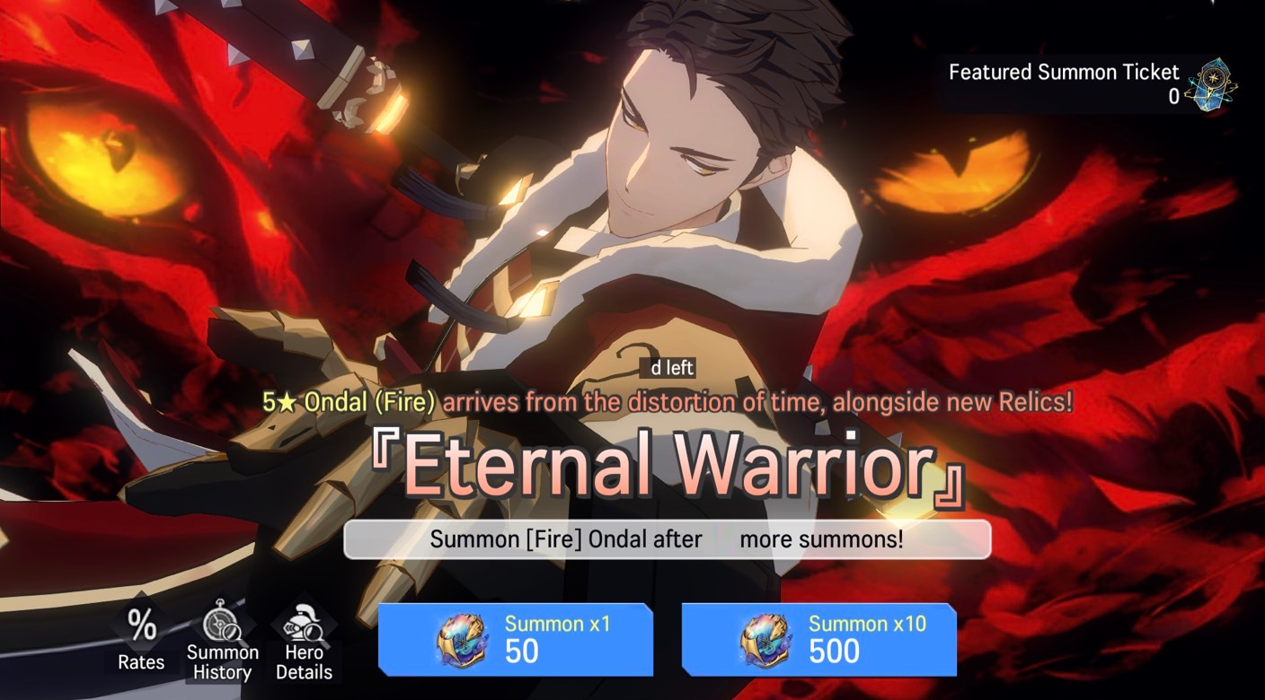 ※ If the player has not obtained the featured Hero's Relic within 9 summons, the player is guaranteed to obtain the Relic on their 10th summon.