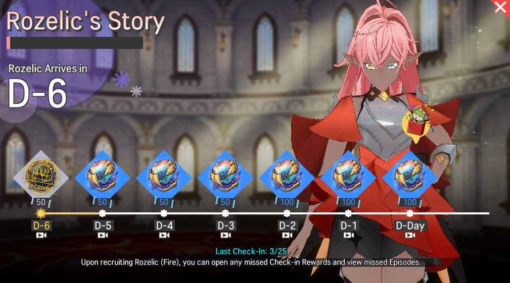 ※ After the Check-In Event ends, Rozelic's Story will not be accessible even if you recruit Rozelic.