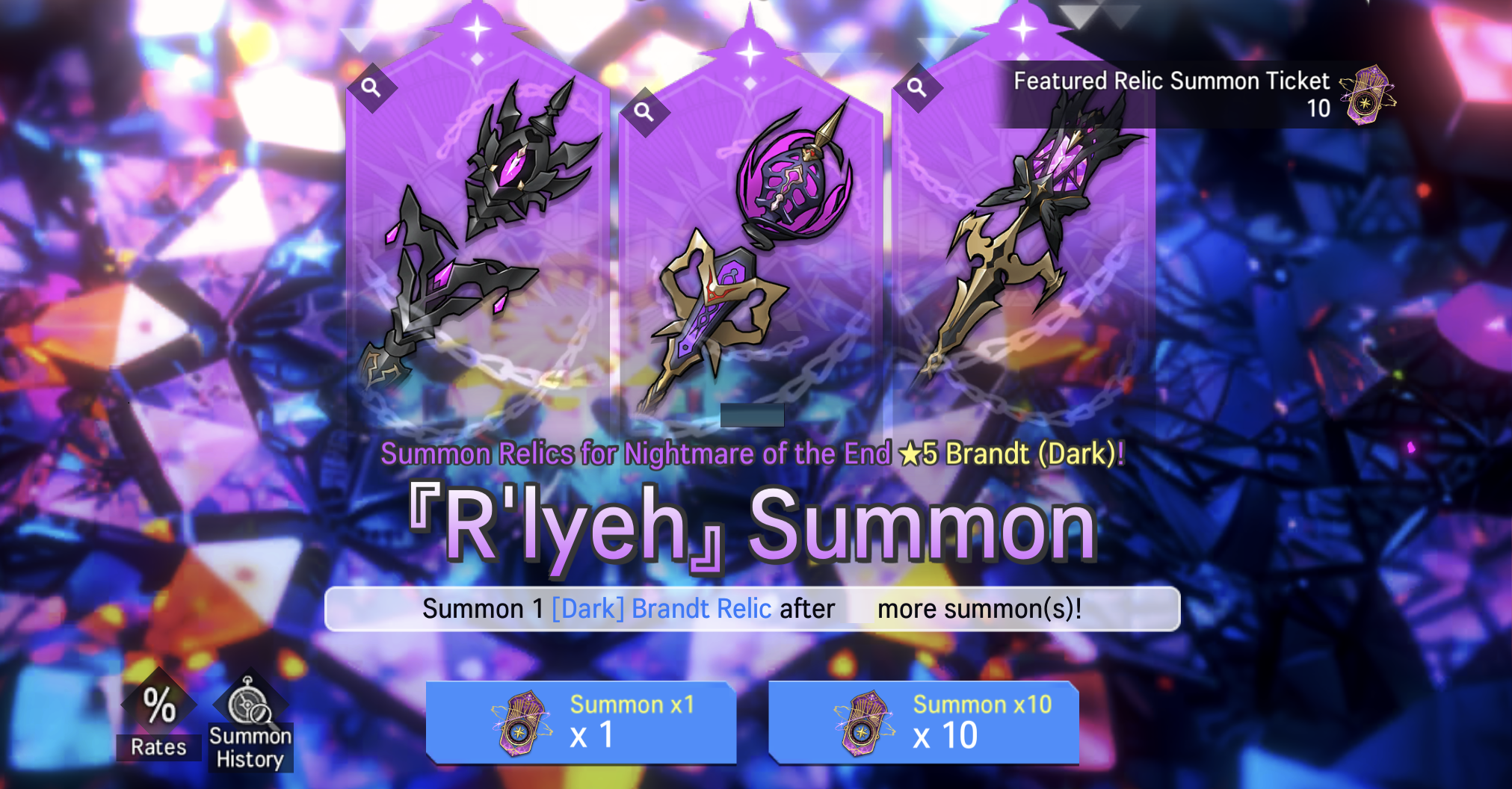 ※ If the player obtains the featured Relic before their 10th, the summon count will be reset.