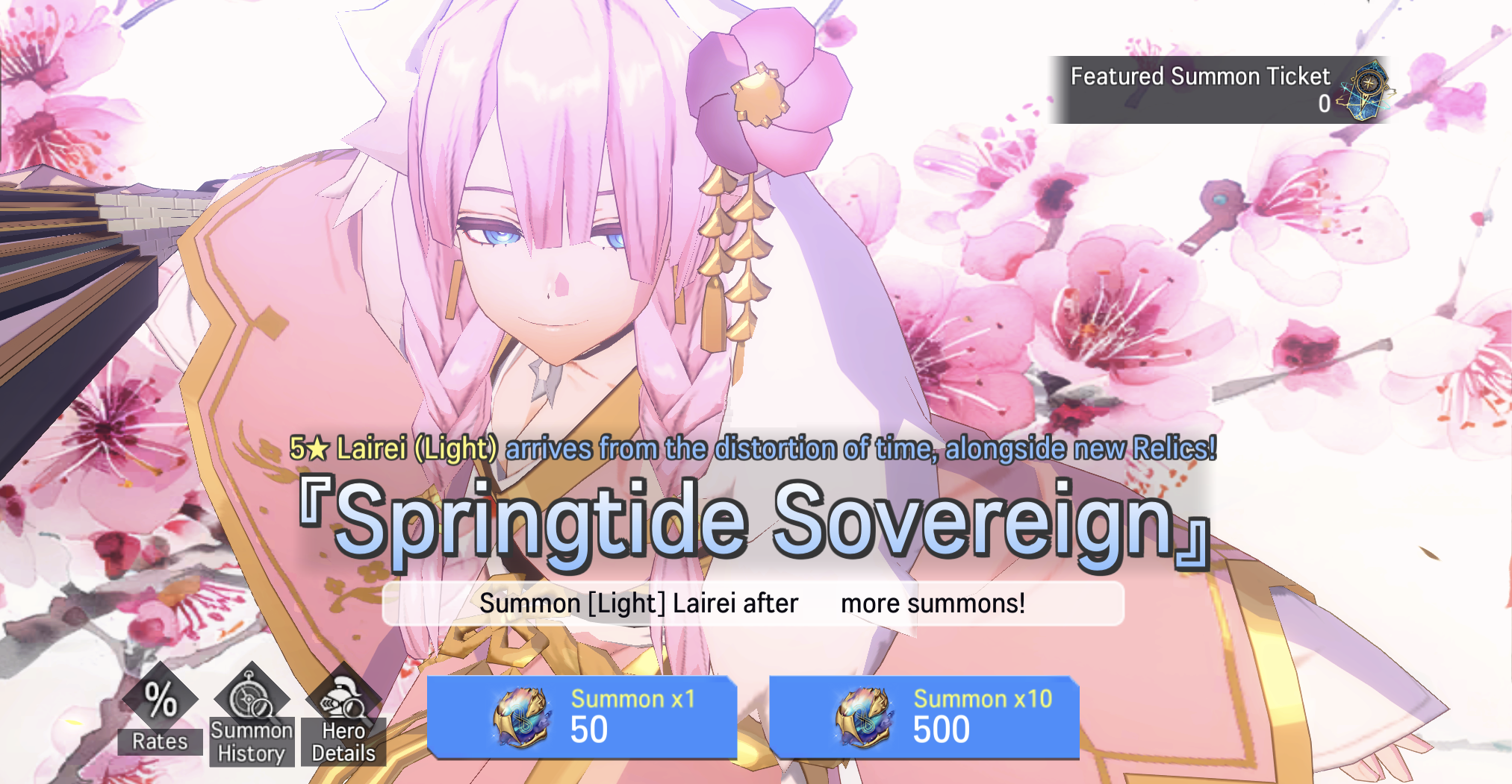 ※ Detailed information on summon rates for obtainable Heroes and Relics are available via the Rates button.