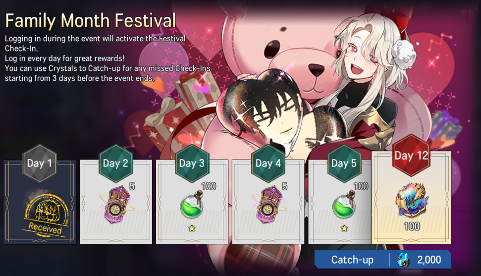 ※ You can spend Crystals to make up for missed Check-Ins up to 3 days before the event ends. The Check-In Catch Up feature will be available from May 17th (Fri) 03:00 (UTC +0)