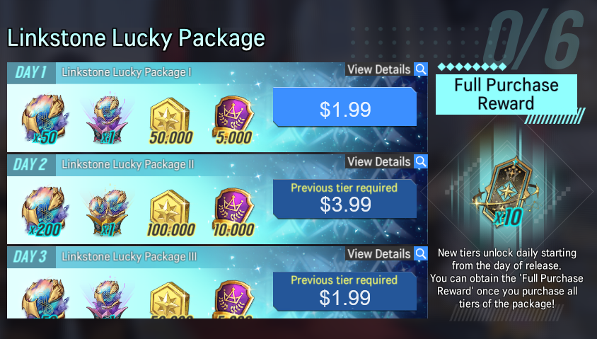 ※ You will receive 10 Link Summon Tickets once you purchase all tiers of the package.※ You may only purchase each package tier once.