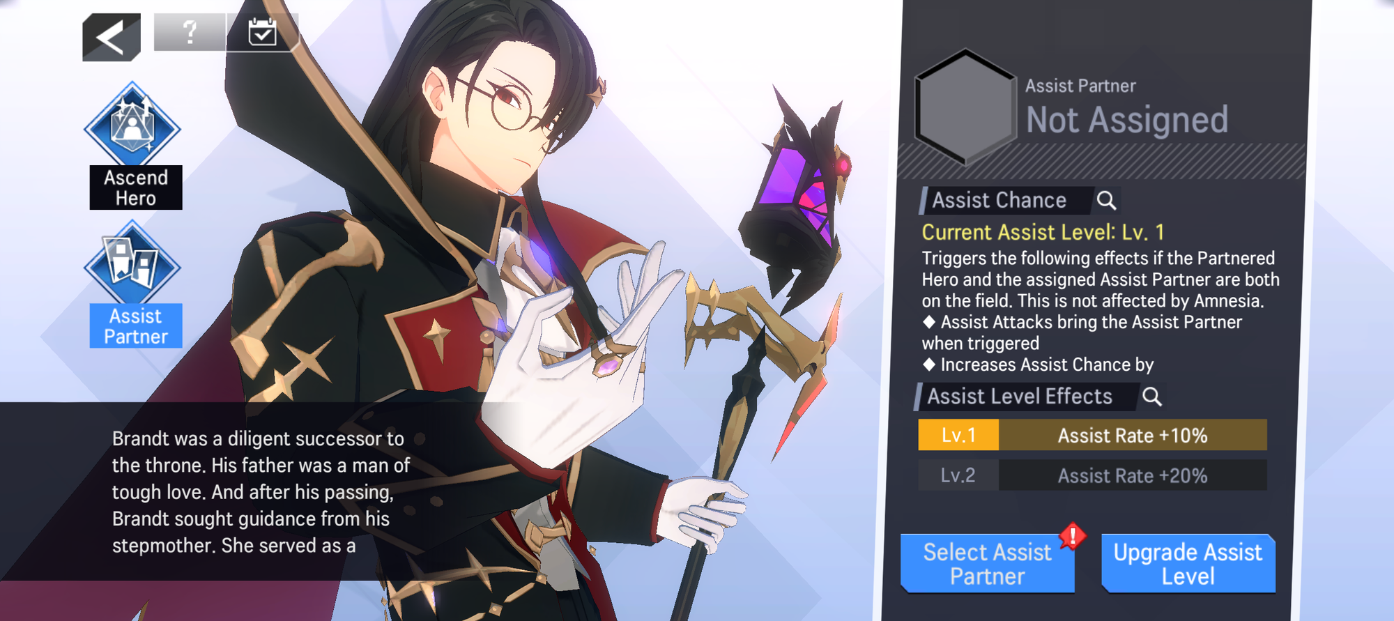 - Heroes without assigned Assist Partners will default to their base Assist Chance. Base Assist Chance is not affected by Assist Level upgrades.