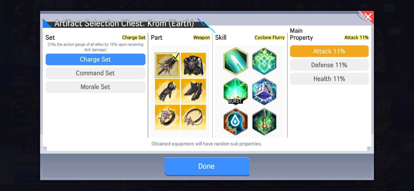 ※ Obtain an Artifact of your choice with your preferred set, part, main property, and skill. Sub-properties of the Artifact will be chosen at random.