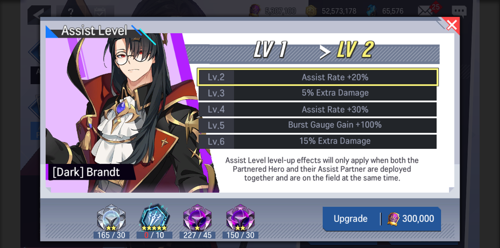 - Assist Levels can be upgraded for heroes even without an assigned Assist Partner. Changing Assist Partners does not affect the Assist Levels of heroes.