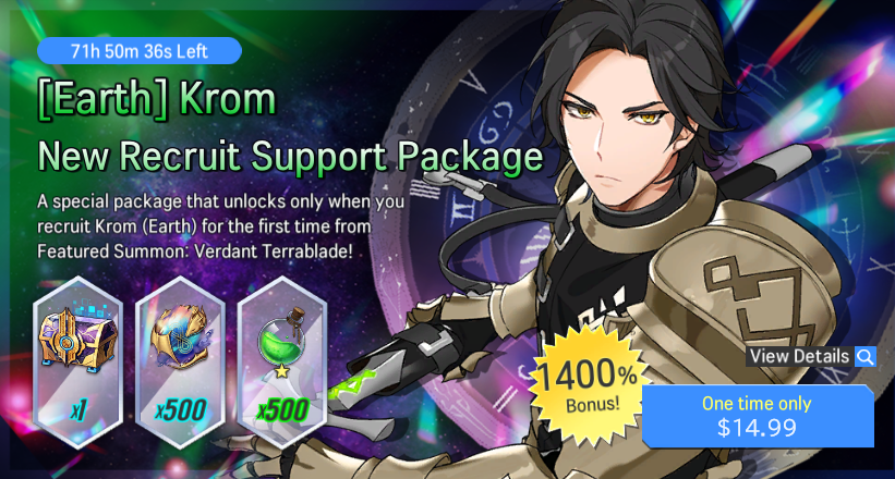 ※ A special package that unlocks only when you recruit Krom (Earth) for the first time from Featured Summon: Verdant Terrablade.