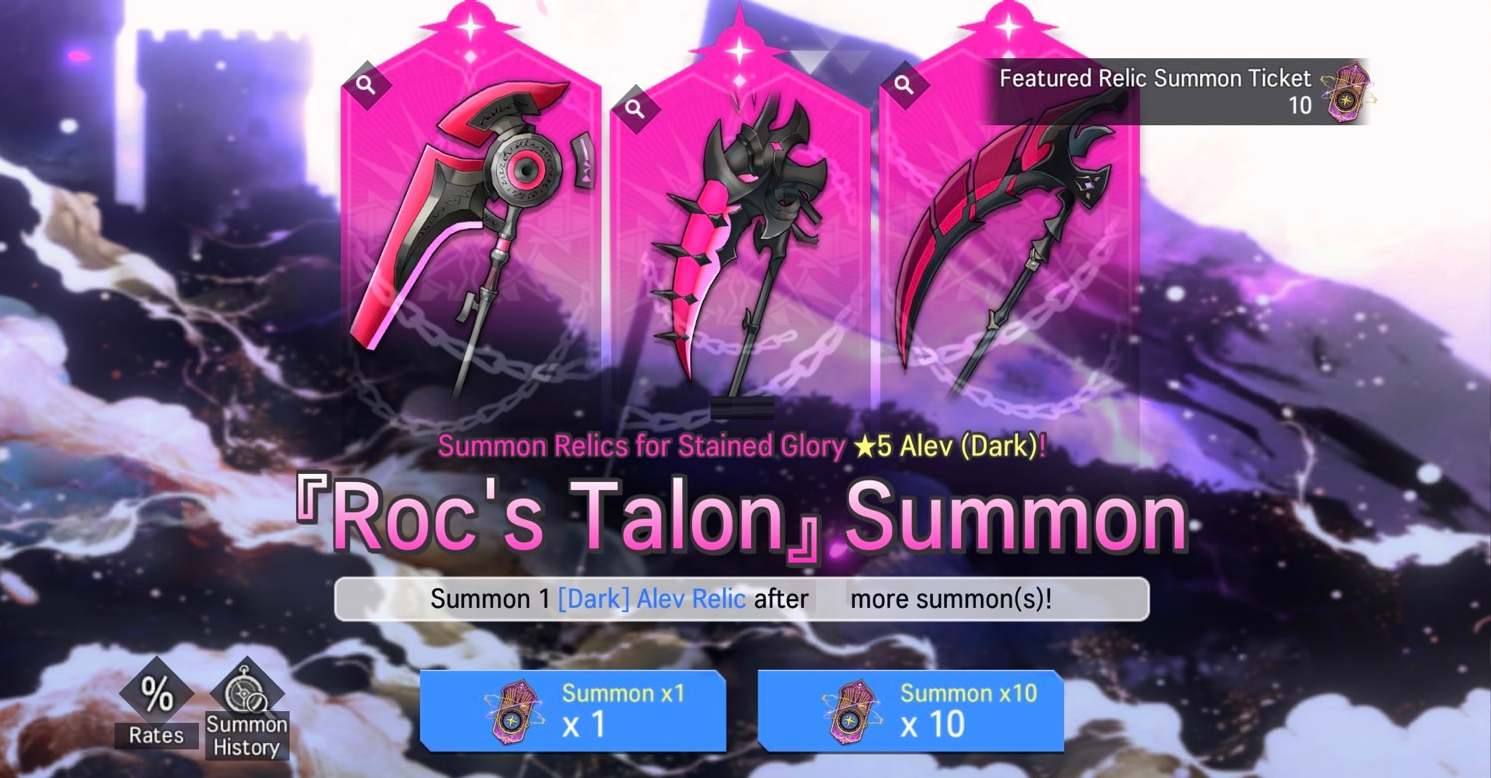 ※ Detailed information on summon rates for obtainable Relics are available via the Rates button.