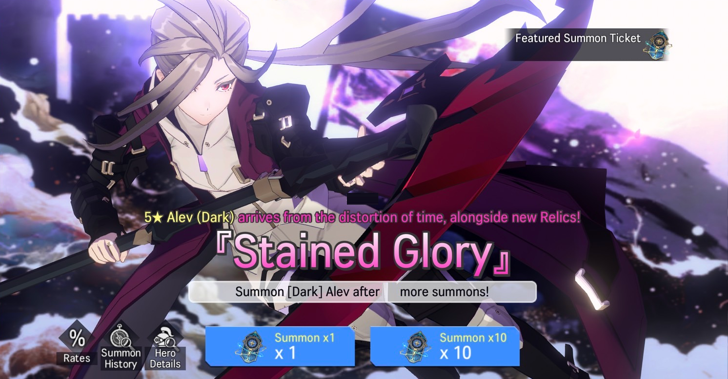 - Alev (Dark) can be recruited through Featured Summon: Stained Glory.