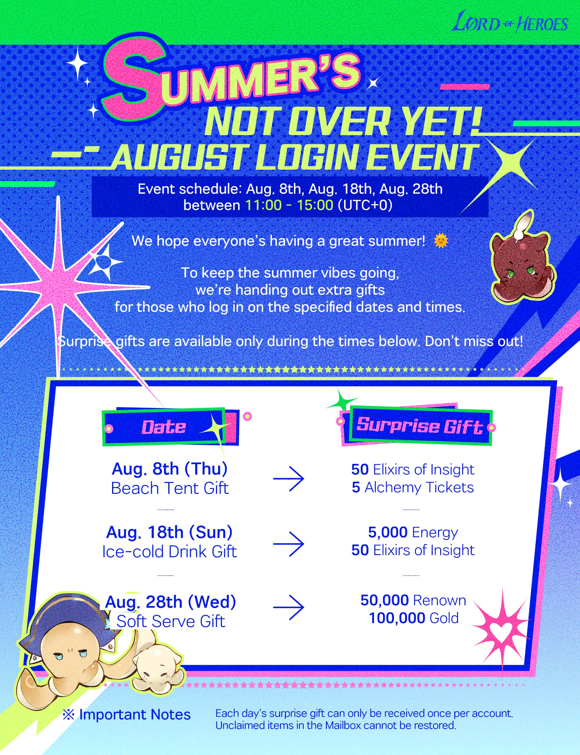 Event [Event] Summer’s Not Over Yet! August Login Event GM Varhya Read more posts by this author. GM Rhodon Read more posts by this author. GM Varhya, GM Rhodon Wednesday, August 7th 2024