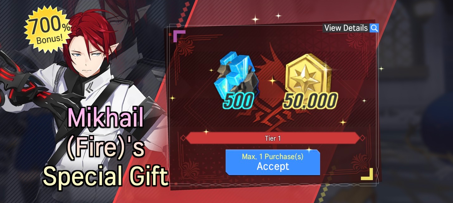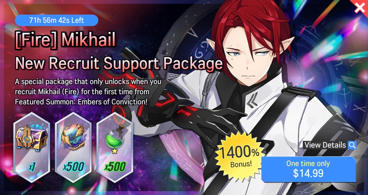 ※ A special package that unlocks only when you recruit Mikhail (Fire) from Featured Summon: Embers of Conviction.