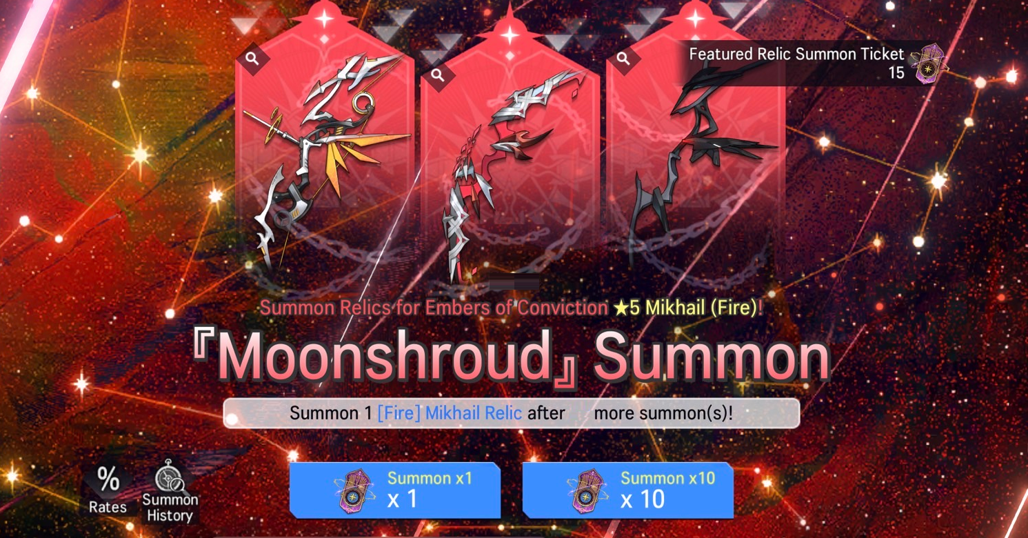 ※ If the player has 'Featured Relic Summon Tickets', the tickets will be used first before other items. However, if the number of tickets possessed is insufficient to perform all desired summons, the player can use Linkstones to complete the summoning process.