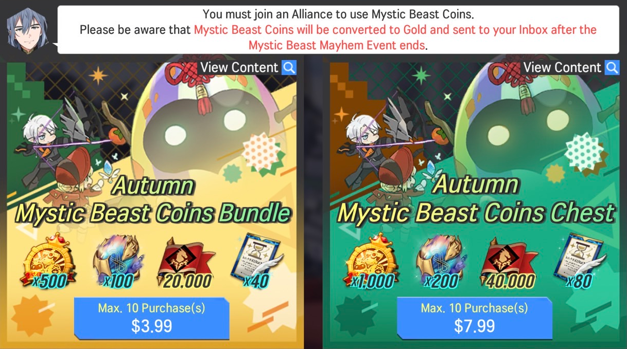 ※ You must be in an Alliance to use Mystic Beast Coins.