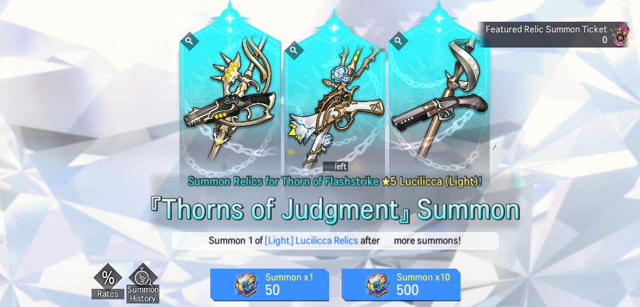 ※ Detailed information on summon rates for obtainable Relics are available via the Rates button.