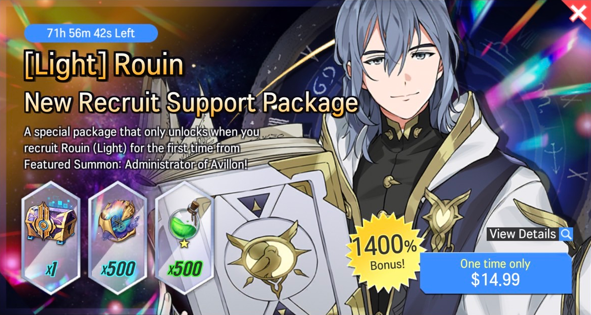 ※ A special package that unlocks only when you recruit Rouin (Light) from Featured Summon: Administrator of Avillon.